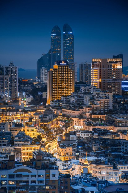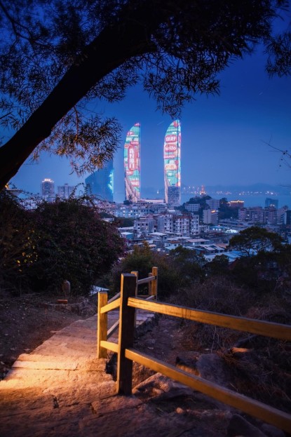 关键机位划重点!当缆车滑到中段时,双子塔会稳稳地“站”在画面中央,背后是渐变橘粉的晚霞,脚下是碎金般的厦门湾海面——这个角度,堪称“缆车+双子塔+日落”铁三角的黄金组合。再往后走,老城区红瓦屋顶层层叠叠铺开,与摩登双子塔隔空对望,新旧碰撞的戏剧感扑面而来,特别适合拍那种“一半烟火一半未来”的都市人文大片。友情提醒:带上长焦镜头!它能帮你把晚霞的柔、海水的闪、建筑的硬朗全压缩进一张照片里,层次感直接爆表。