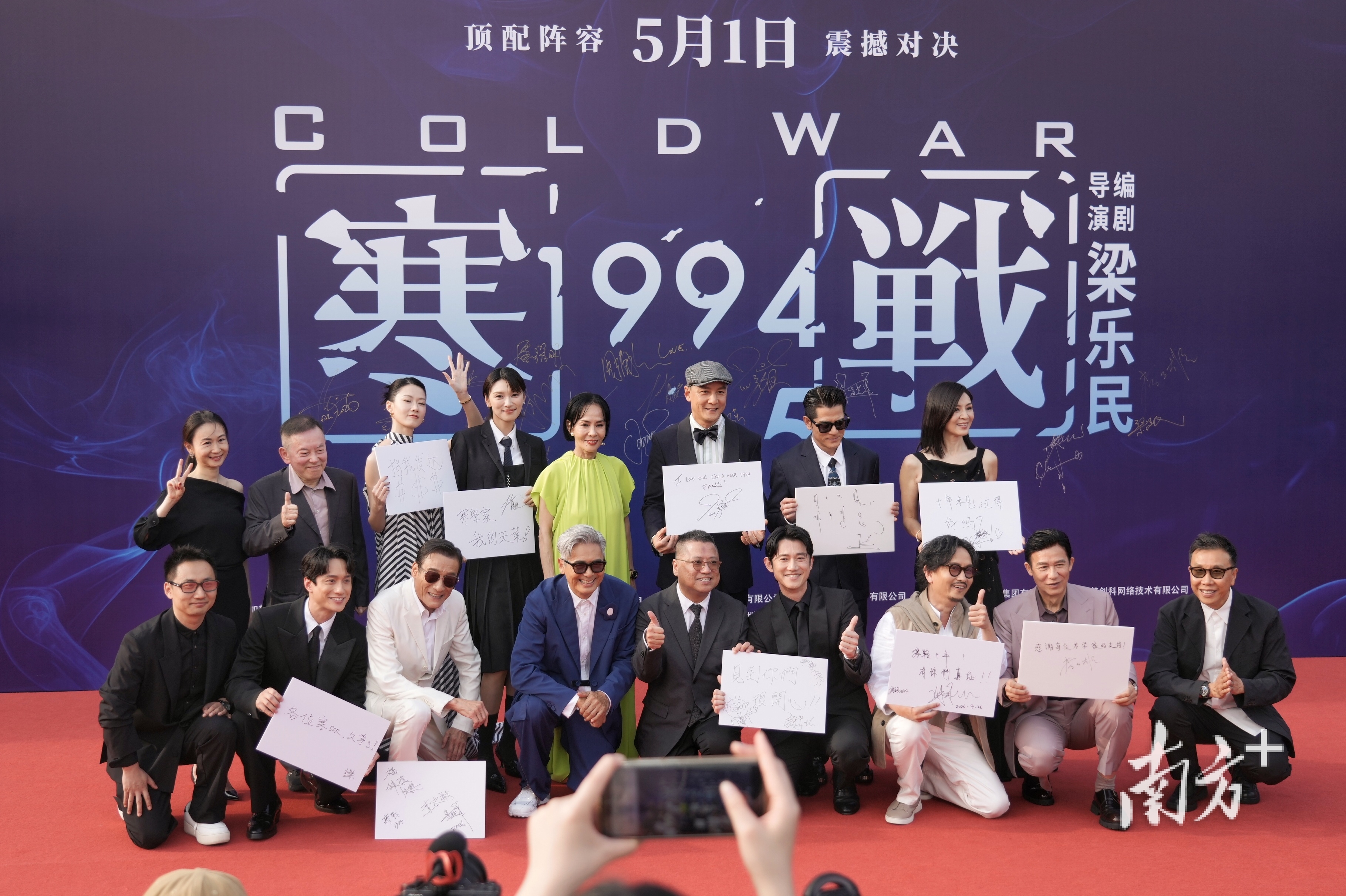 4月26日,电影《寒战1994》全球首映礼在深圳大剧院举行,监制江志强,导演兼编剧梁乐民,主演周润发、郭富城、梁家辉、吴彦祖、刘俊谦、吴慷仁、谢君豪、王丹妮、廖子妤,特别嘉宾杨采妮及李子雄等一同亮相红毯。